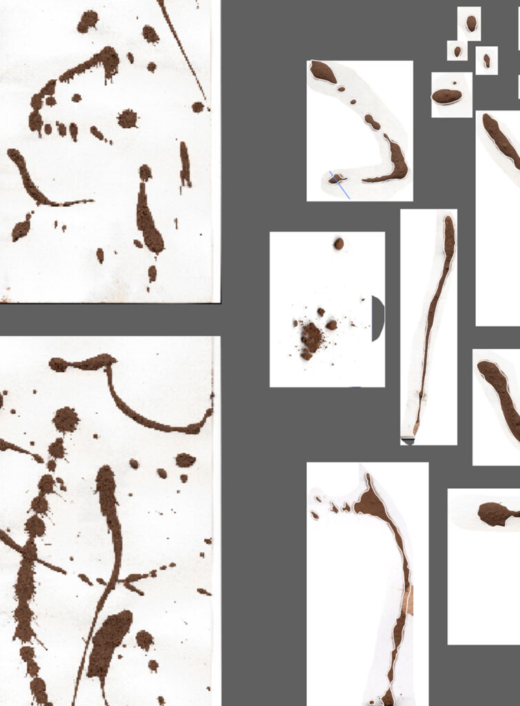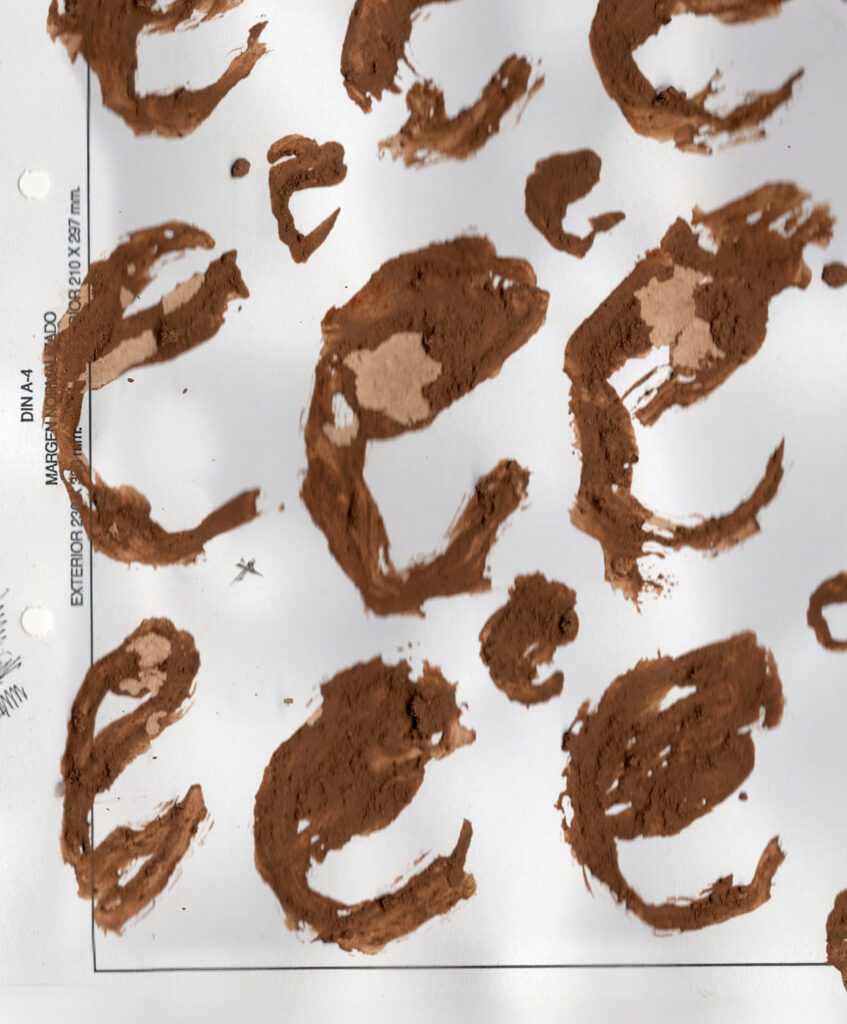 La tierra, presente en el imaginario del videoclip, se convirtió en el punto de partida. Tras colarla y mezclar el polvo con agua, surgió un lodo con el que se construyeron las letras a pincel y salpicadas. Fue un proceso de prueba y depuración, trabajando cada mancha hasta encontrar el equilibrio tipográfico. Los créditos, en una sans serif mayúscula, mantienen un tono atemporal al que se incorporó textura para integrarse con el conjunto. El resultado es una identidad coherente con la naturaleza del videoclip y su atmósfera.